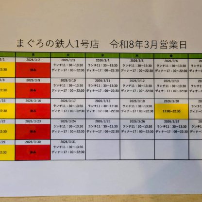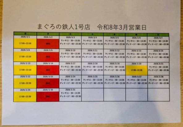 令和8年3月の営業日/営業時間です