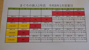 令和8年1月の営業日/営業時間です